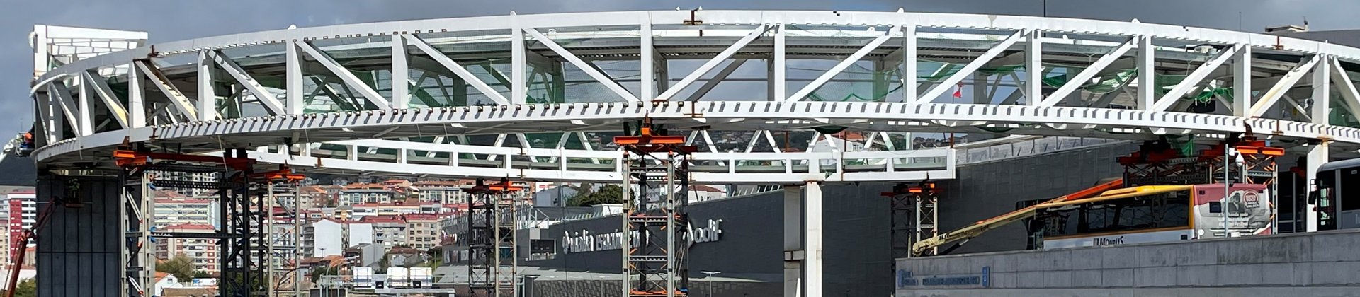 Para el apeo del anillo superior, con un diámetro de 90 metros, INCYE suministró un sistema de apuntalamiento compuesto por siete torres Megaprop, con alturas de hasta 28 metros.